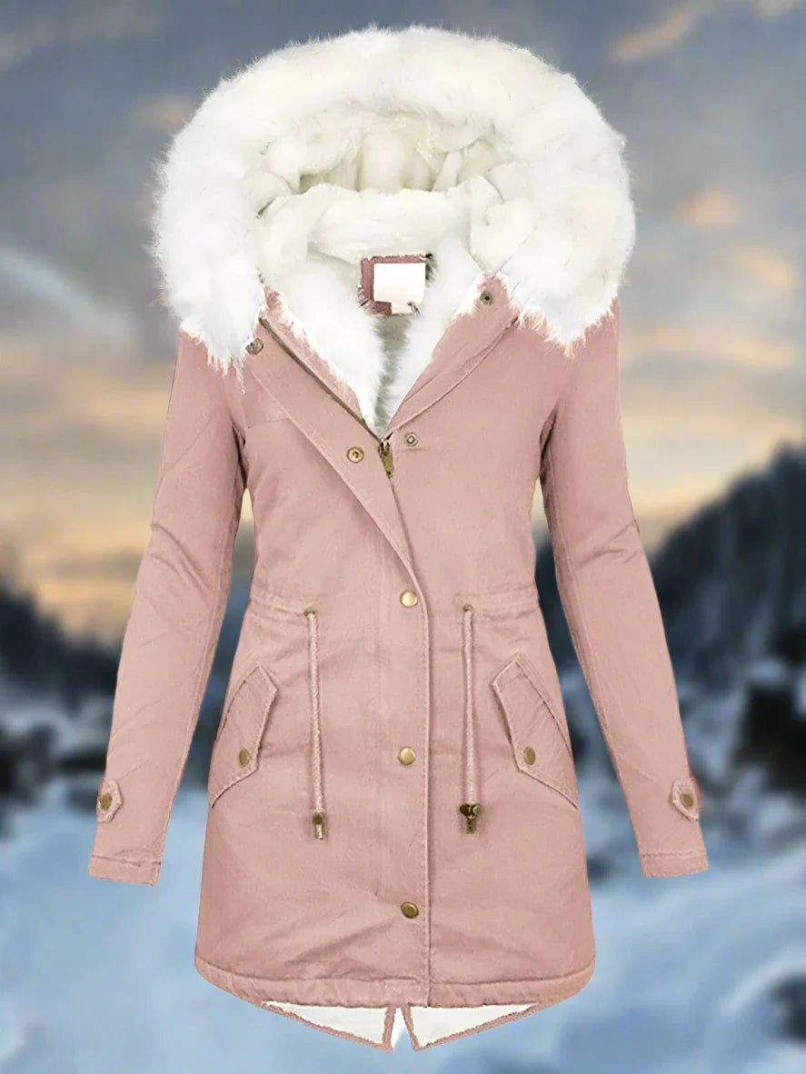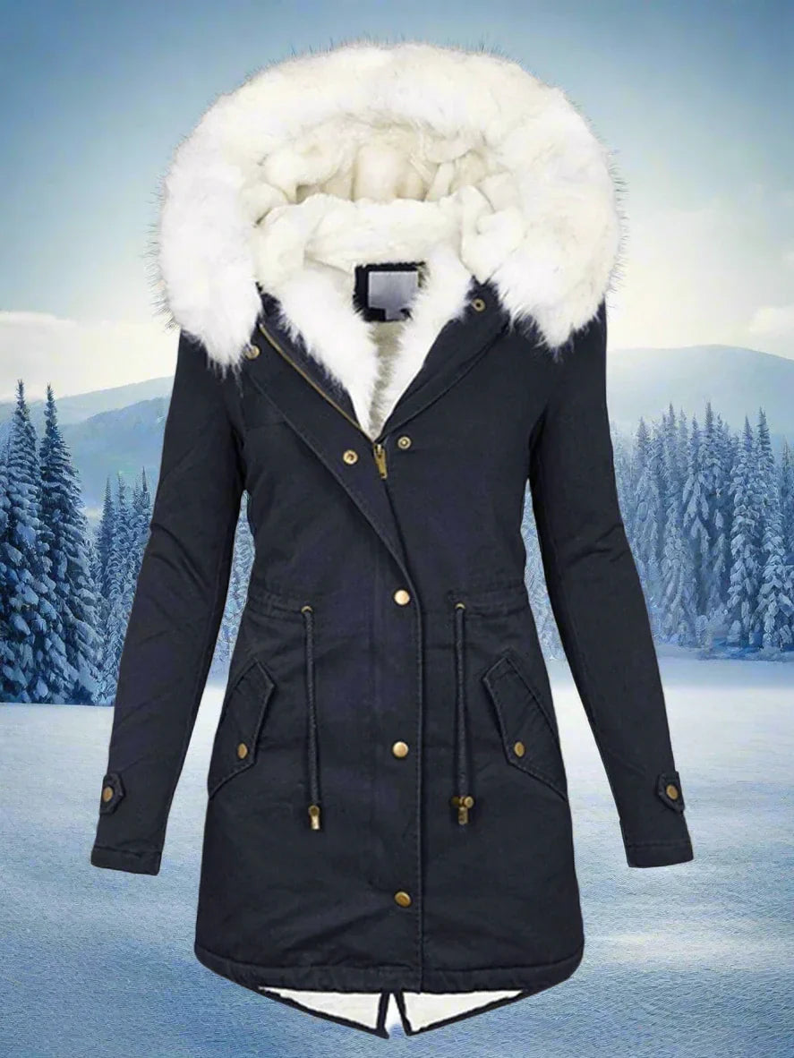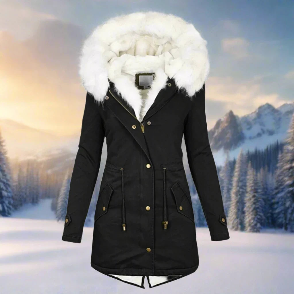 Lunari - Damska parka zimowa z futrzanym kapturem i ociepleniem