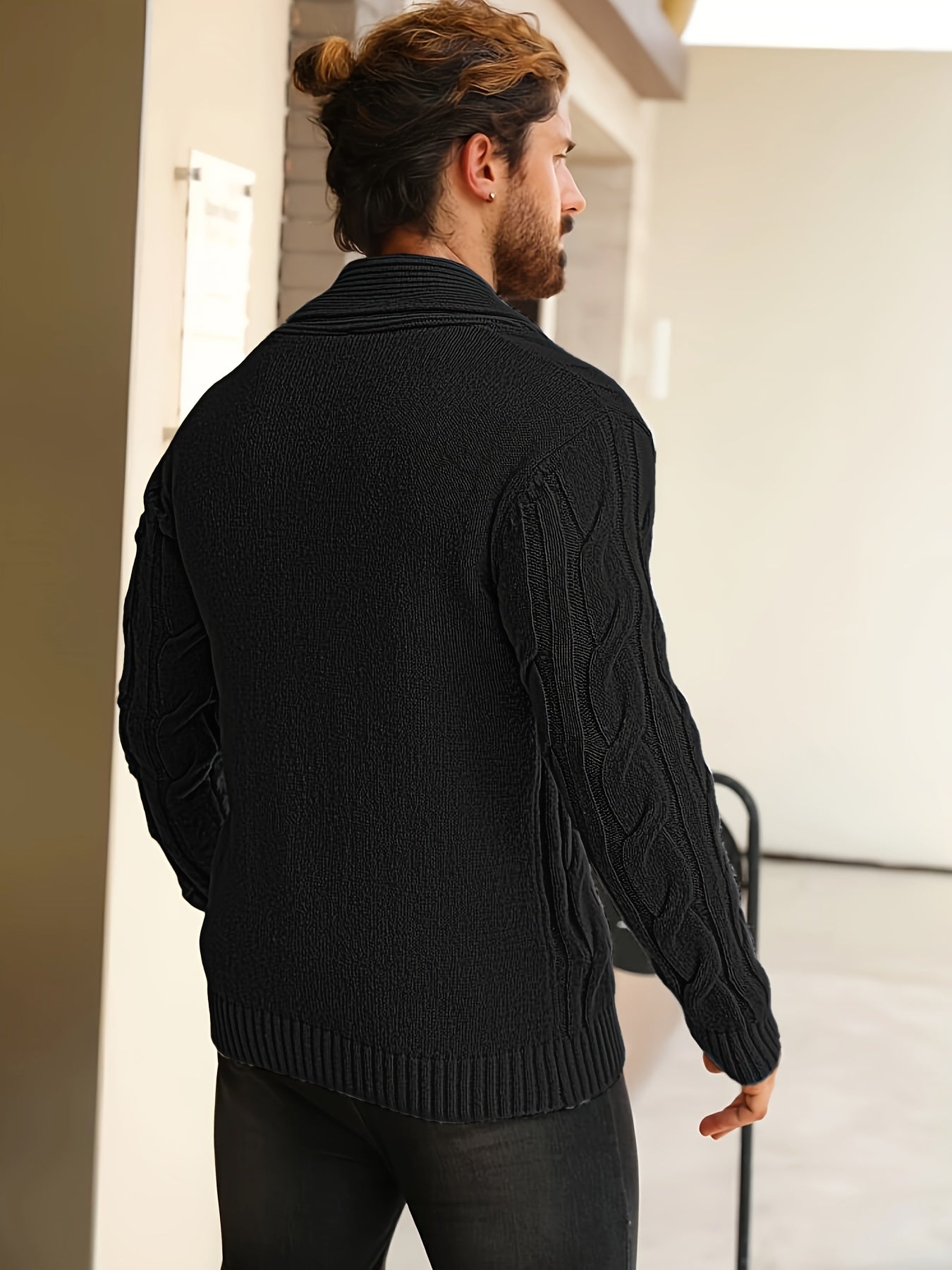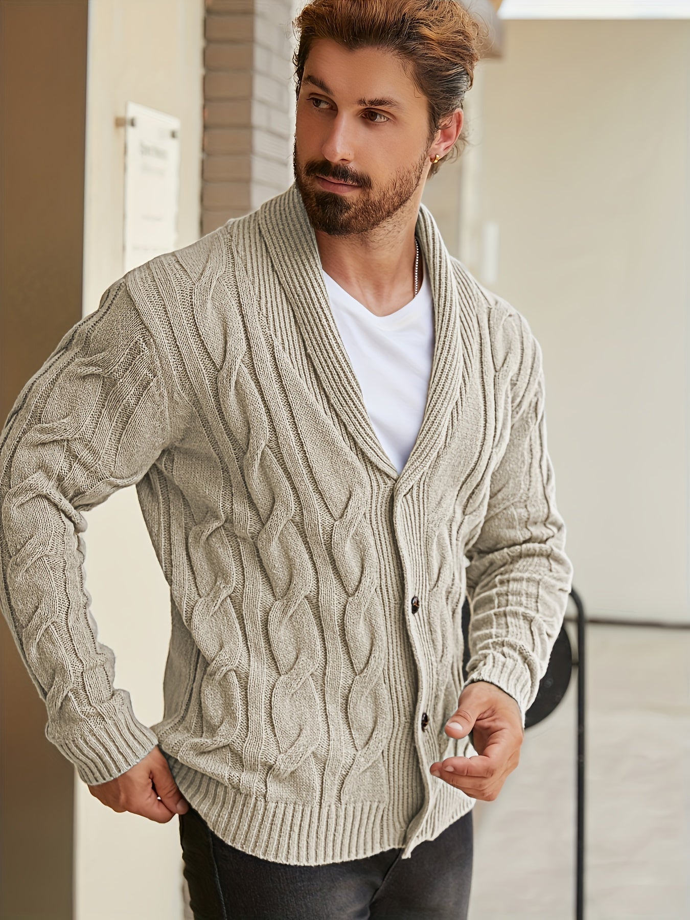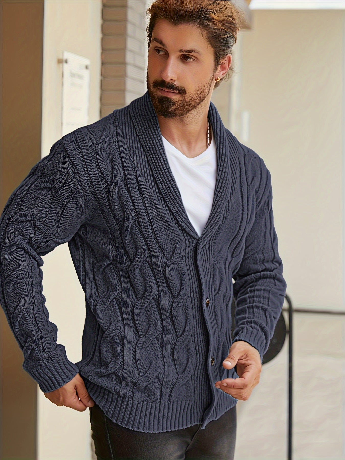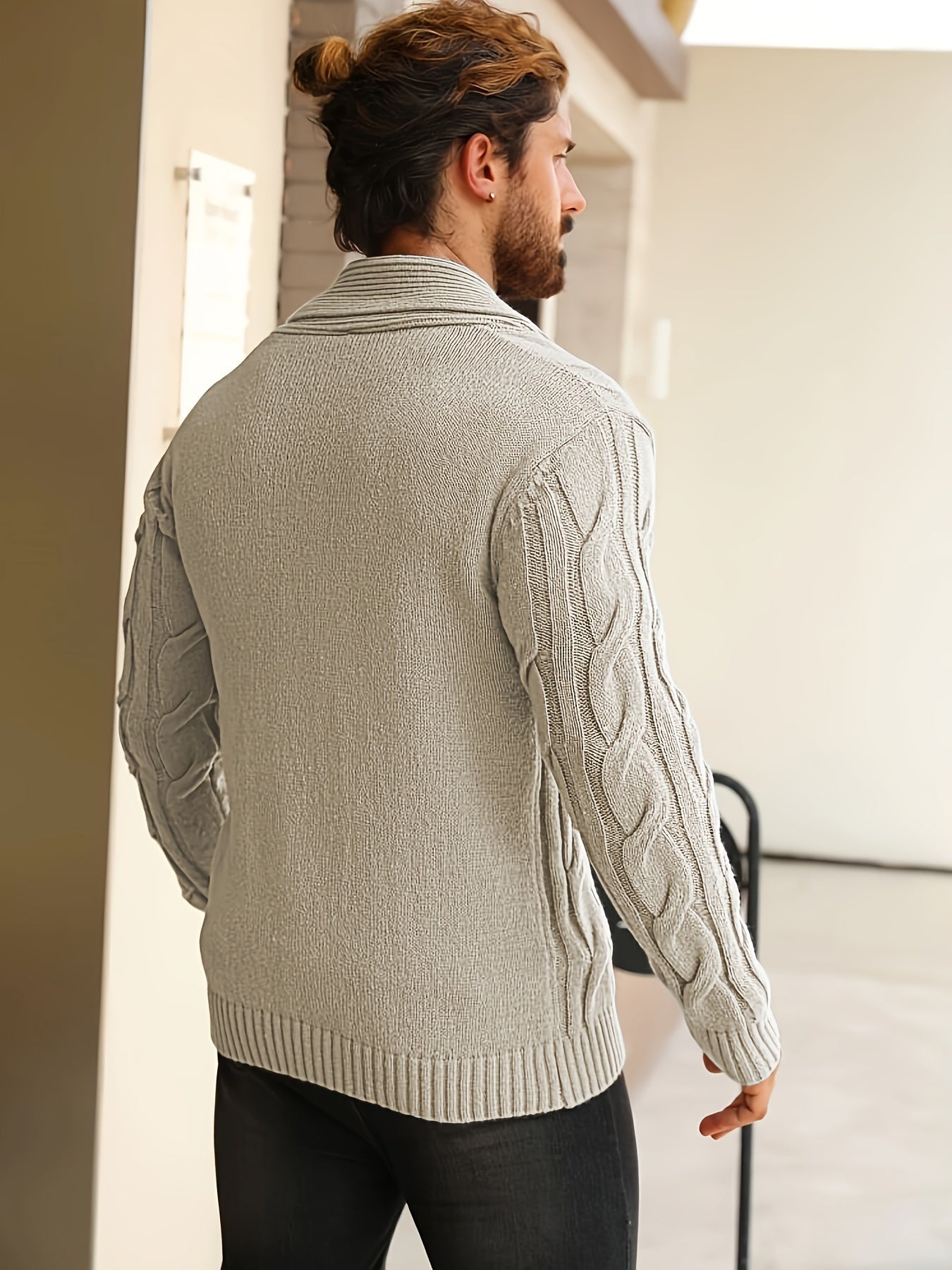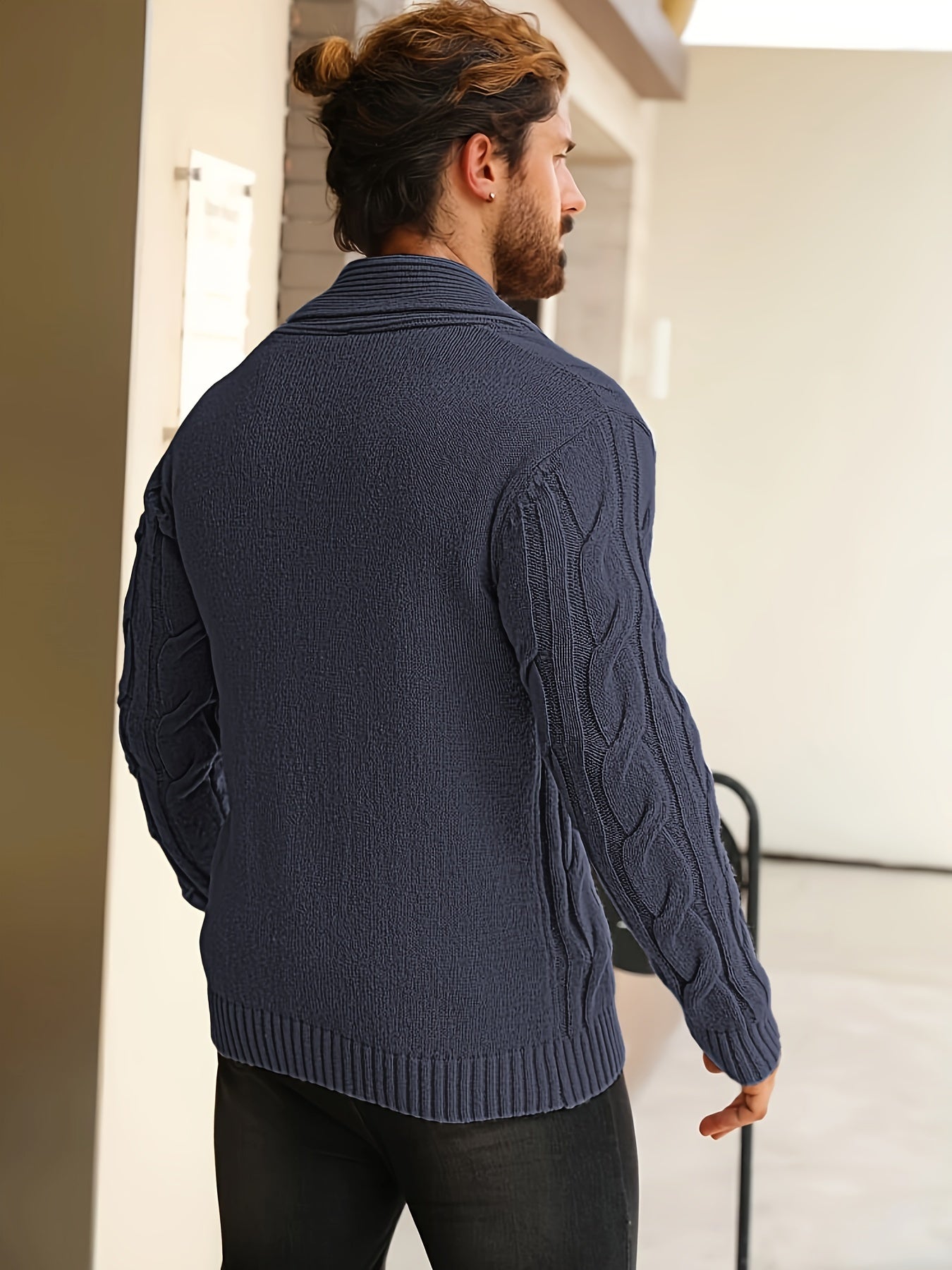 Męski kardigan z grubym splotem i szalowym kołnierzem